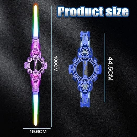 "7-Color LED Light Blade for Dynamic Visuals: Equipped with vibrant RGB lighting that cycles through seven colors, this LED blade adds eye-catching effects to any cosplay or display, bringing your character or roleplay scenes to life with realistic, color-changing illumination. Realistic Smoke and Spark Effects for Dramatic Action: The sword features a built-in vent that produces smoke-like visuals combined with simulated sparks, creating exciting, cinematic effects that enhance roleplay, stage performances, photo shoots, and anime-inspired action sequences. Innovative 360 Dual-Rotational Axis Design: Master flexible fighting styles! The innovative dual-rotational axis supports 360 free rotation, paired with retractable blades. This design allows for a variety of fighting stances and fluid movements, significantly enhancing control fun and enabling dynamic battle sequences."